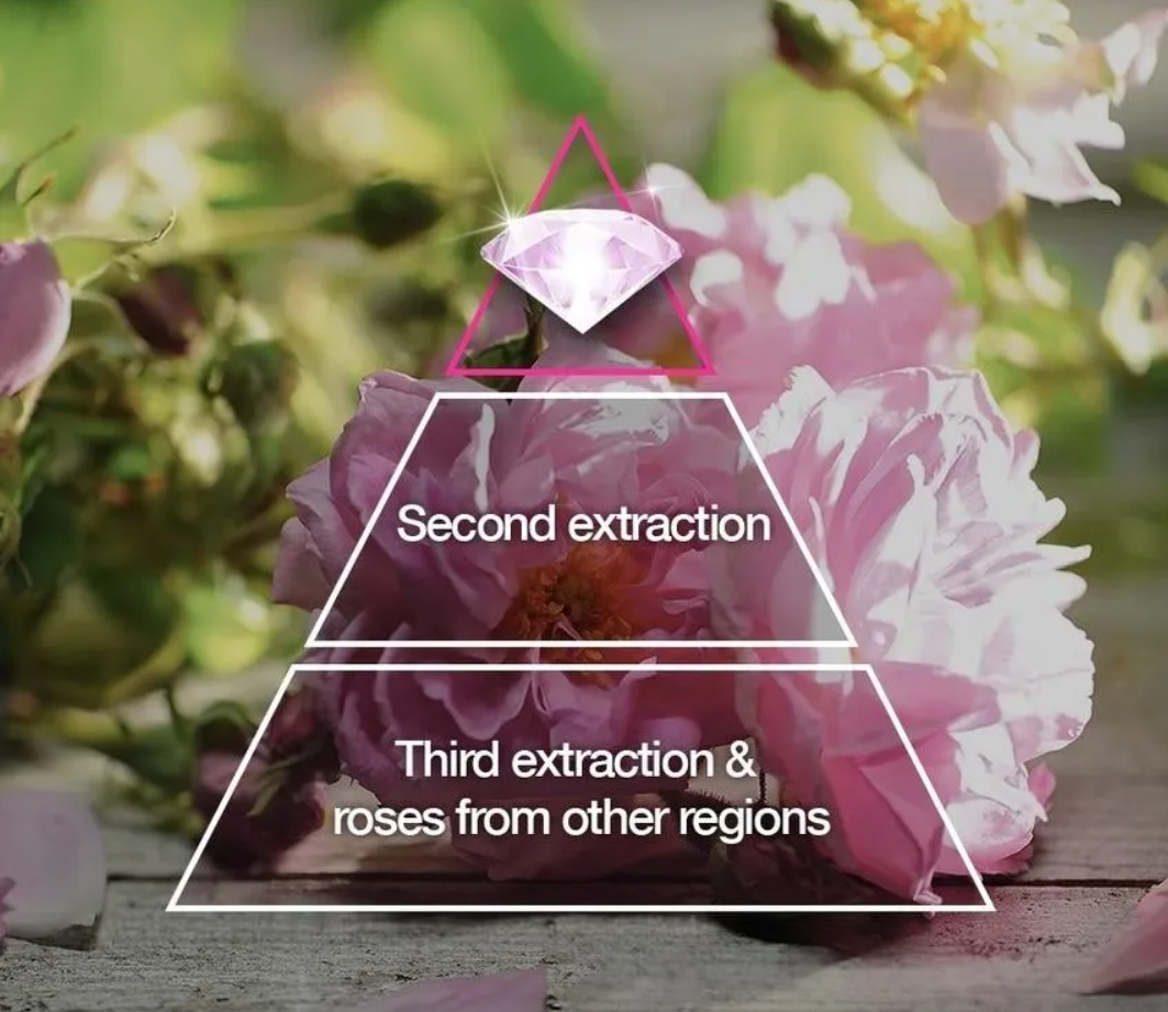 تستخدم ISOI القطرات الأولى من زيت الورد البلغاري المستخرج من الورود المقطوفة يدويًا في شهر واحد من العام بأكمله، على الرغم من التكلفة العالية، والتي لا تقارن بالزيوت المنتجة من عمليتي الاستخراج الثانية والثالثة، وذلك بسبب فعاليته التي لا مثيل لها.